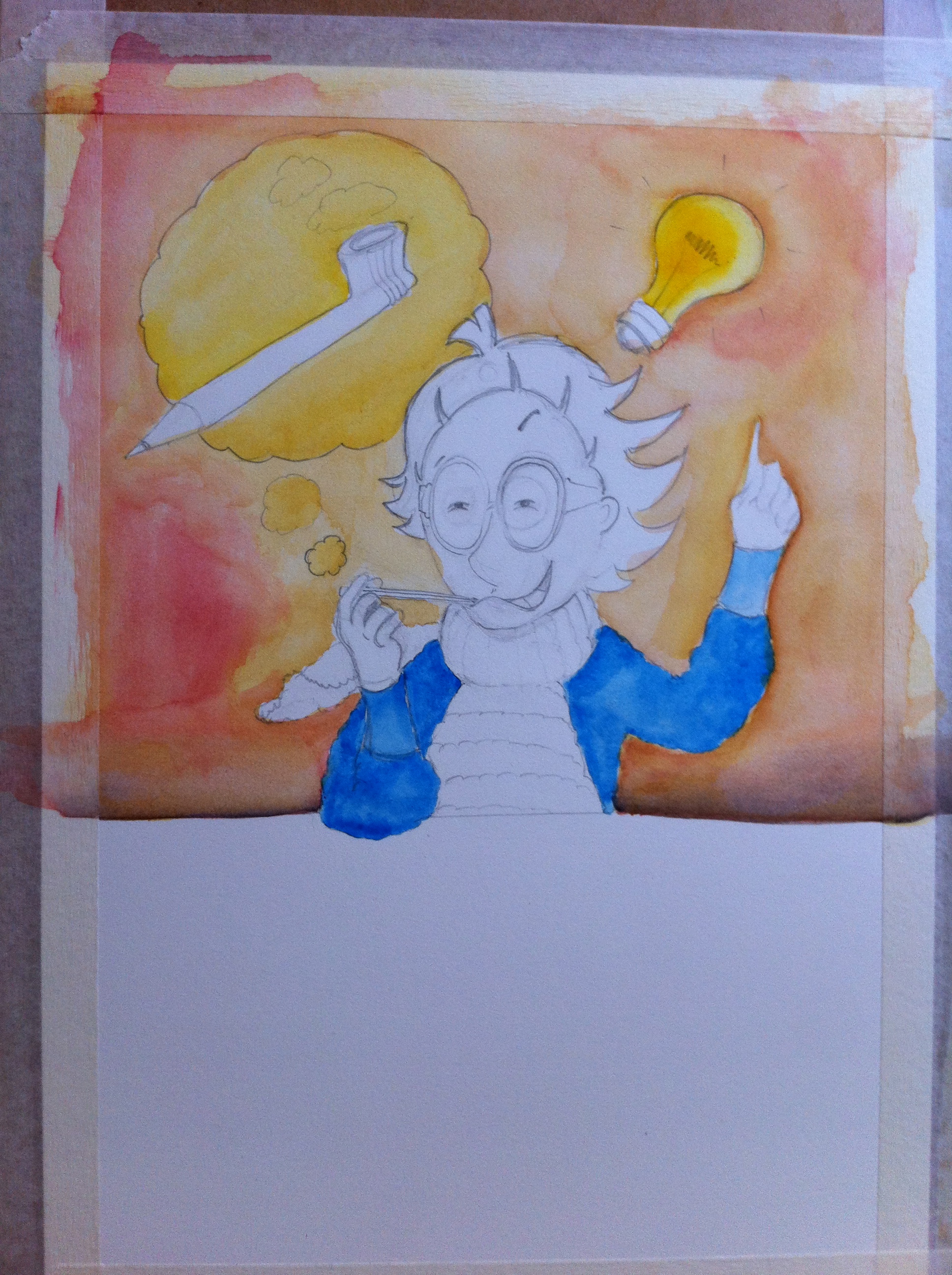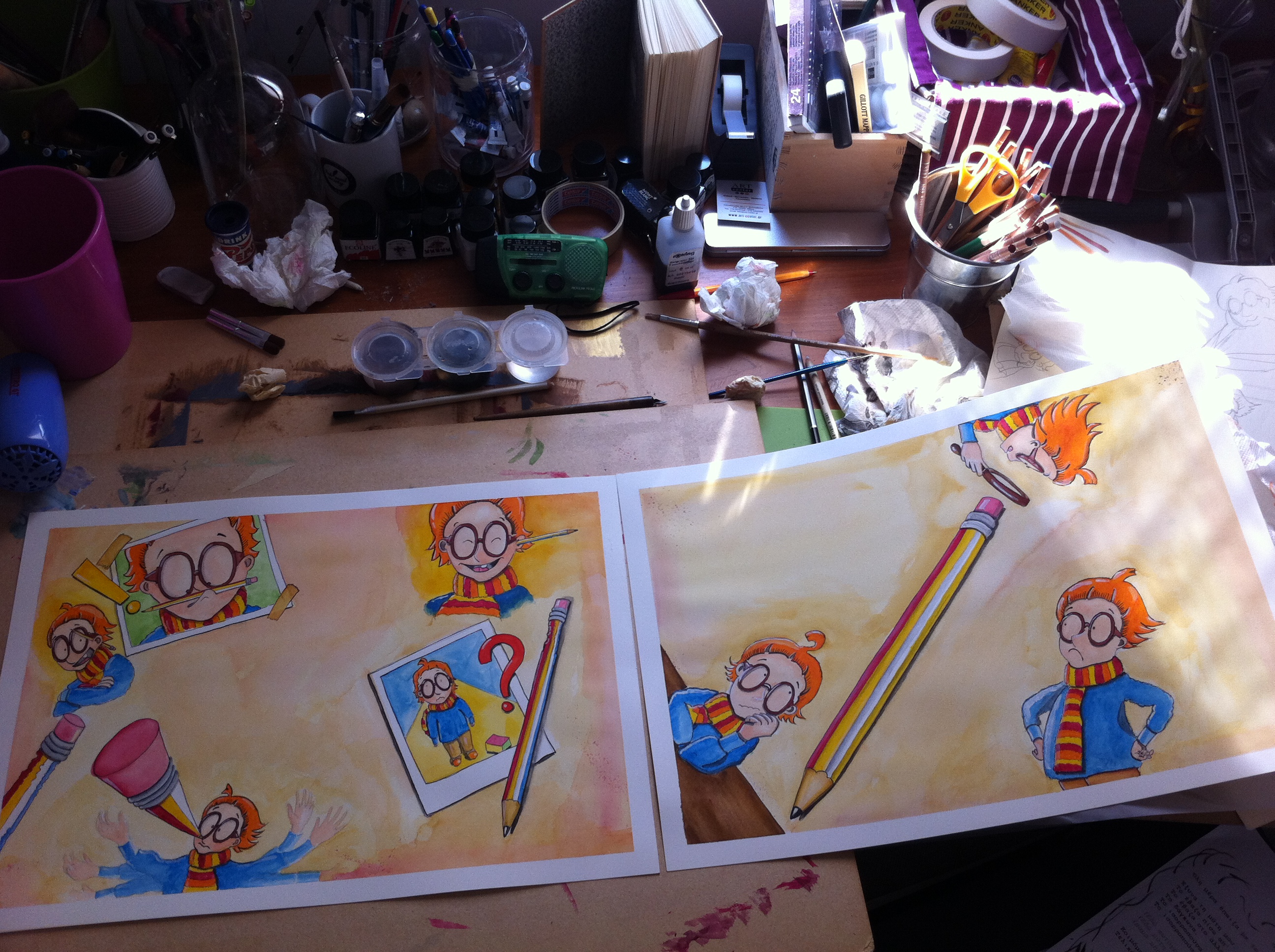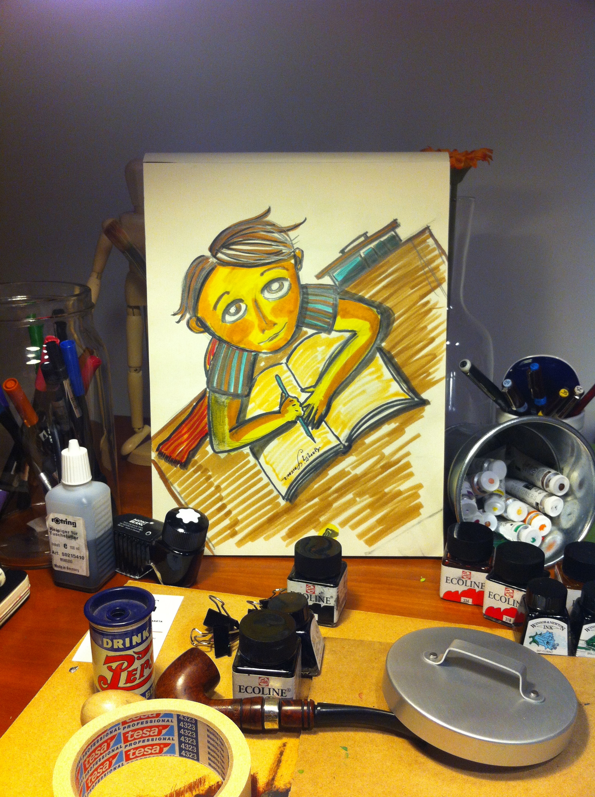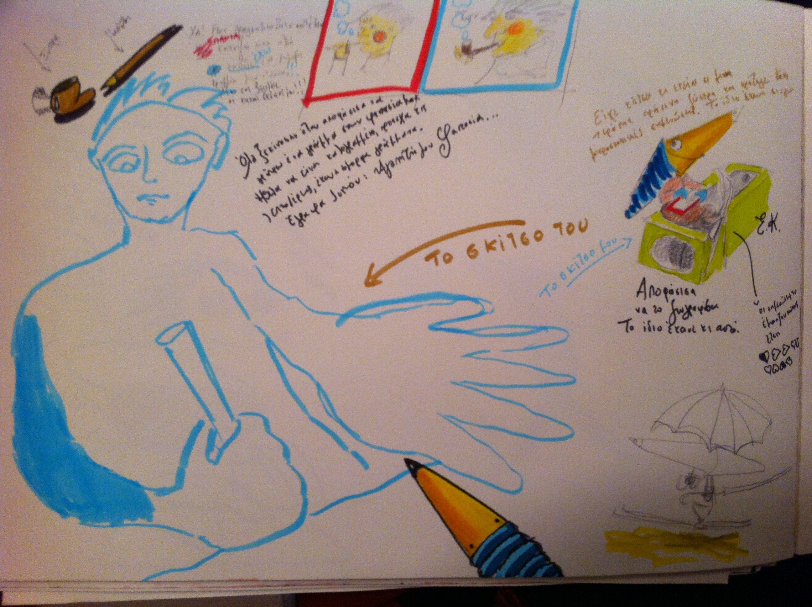 Και τότε μου ‘ρθε. Όχι η ιδέα. Μου ‘ρθε ένα Χμ που είχε βαρεθεί να με περιμένει και να παρακολουθεί τους πανικόβλητους πειραματισμούς μου και μου είπε «άντε, πιάσε το πινέλο και ξεκίνα!». Κι έτσι γεννήθηκε ο Έγκμοντ. Χωρίς προσχέδιο. Έτσι ξαφνικά, με φώναξαν και μου είπαν να τον πάρω από το χμαιευτήριο.